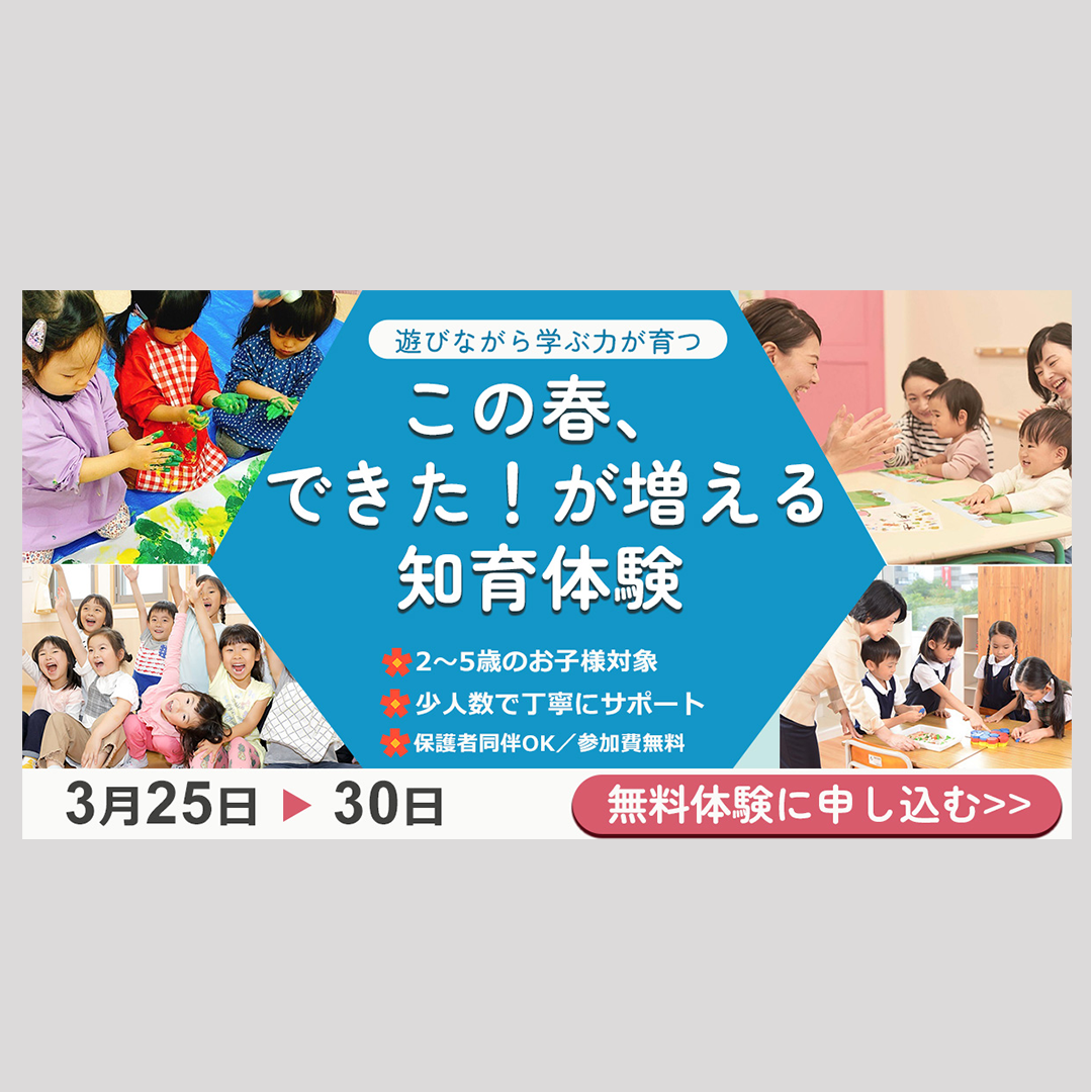 知育体験バナー 2026年2月7日 最終更新日時 : 2026年2月9日 mizuki ★前提条件:この春、できた!が増える知育体験「できた!」の積み重ねが自信と学びを育てる思考力・表現力・創造力を伸ばす春の体験教室初めての子でも安心して参加できます写真はお任せします。 ★用途:Webサイトのトップバナー ★夢中になっている表情の写真を入れることで教室の雰囲気や様子がわかり、ちょっとしたイラストを入れるここで優しさをプラスしました。 ★使用ツール:Photoshop ★製作時間:1.5時間 \ 最新情報をチェック /